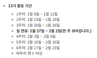 궁금해하실 13기 활동 기간은