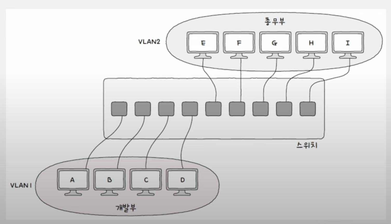 | 데이터 링크 계층 | NIC 스위치(전이중 통신+VLAN) |