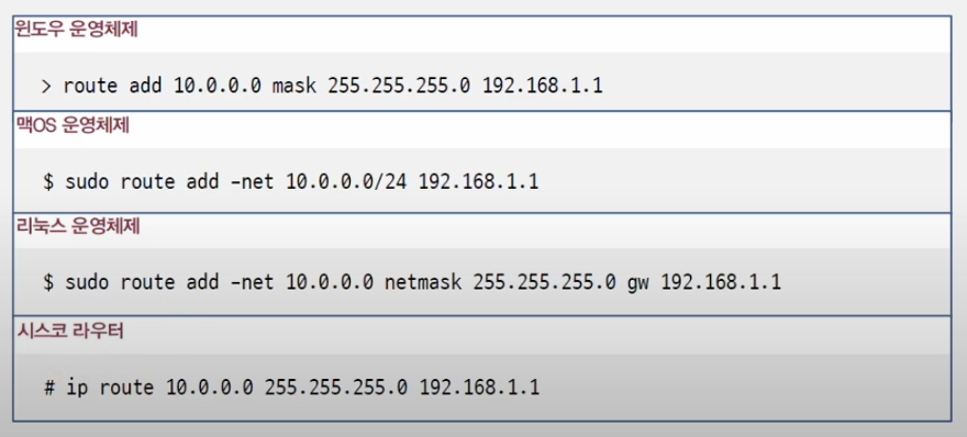 이런 식으로 라우팅 테이블 항목을 다루는 명령어를 활용한다.
