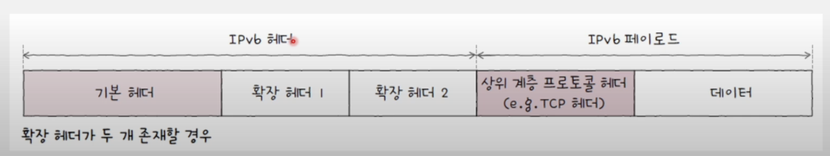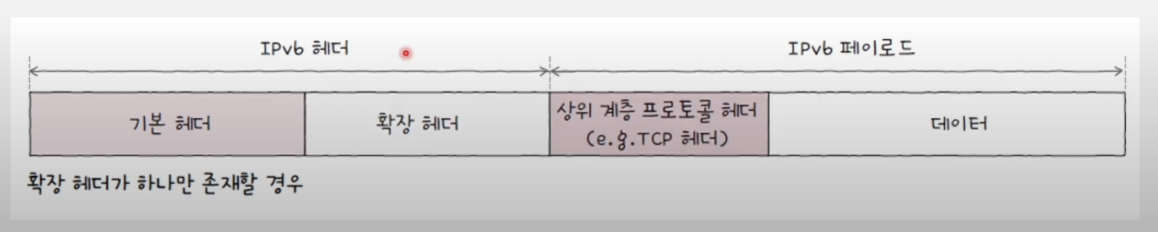 다만 IPv6는 추가적인 헤더 정보가 필요할 경우에는, 기본 헤더와 페이로드 데이터 사이에 확장 헤더라는 추가 헤더를 끼워 넣는다.