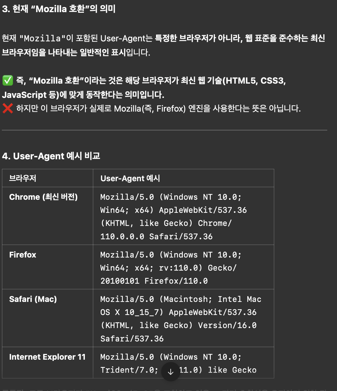 예전에 공부할 때부터 웹 브라우저의 Mozilla 호환 여부가 뭔지 좀 궁금했는데, 공부하다 보니 또 나왔길래 챗지피티한테 물어봤다.