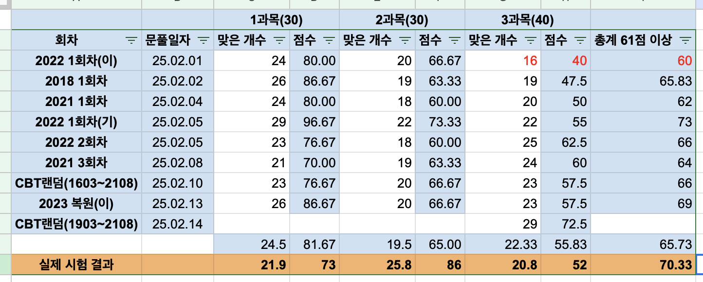 실제 시험 결과랑 비교해 보면 1과목이 현저하게 낮아졌다