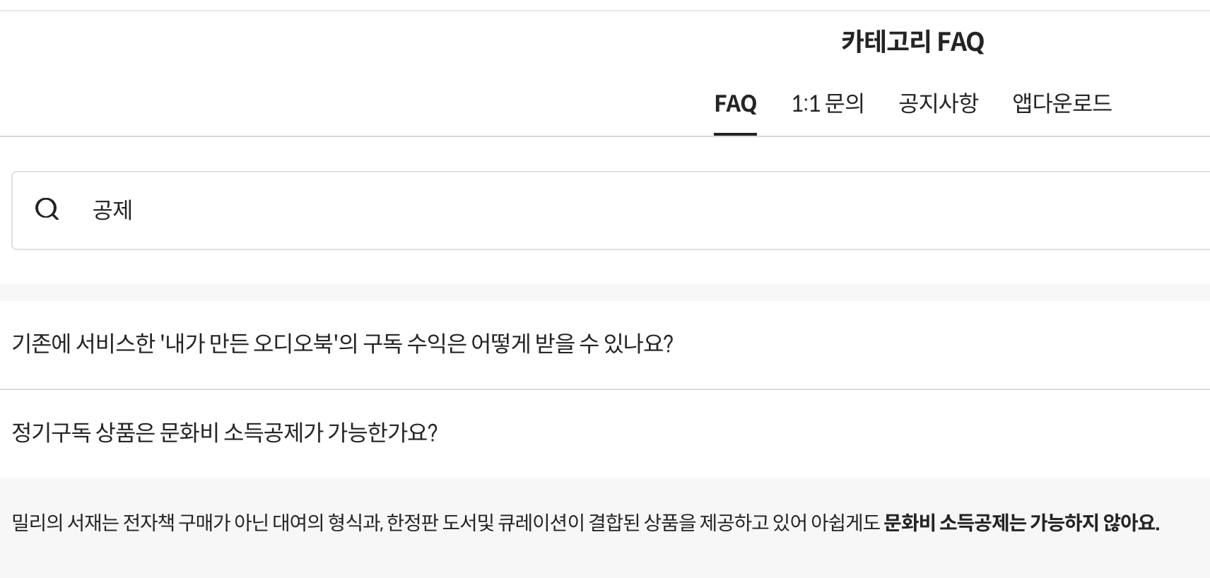 밀리는 책 구매가 아니라 구독이라 연말정산 문화비 소득공제 비대상입니다
