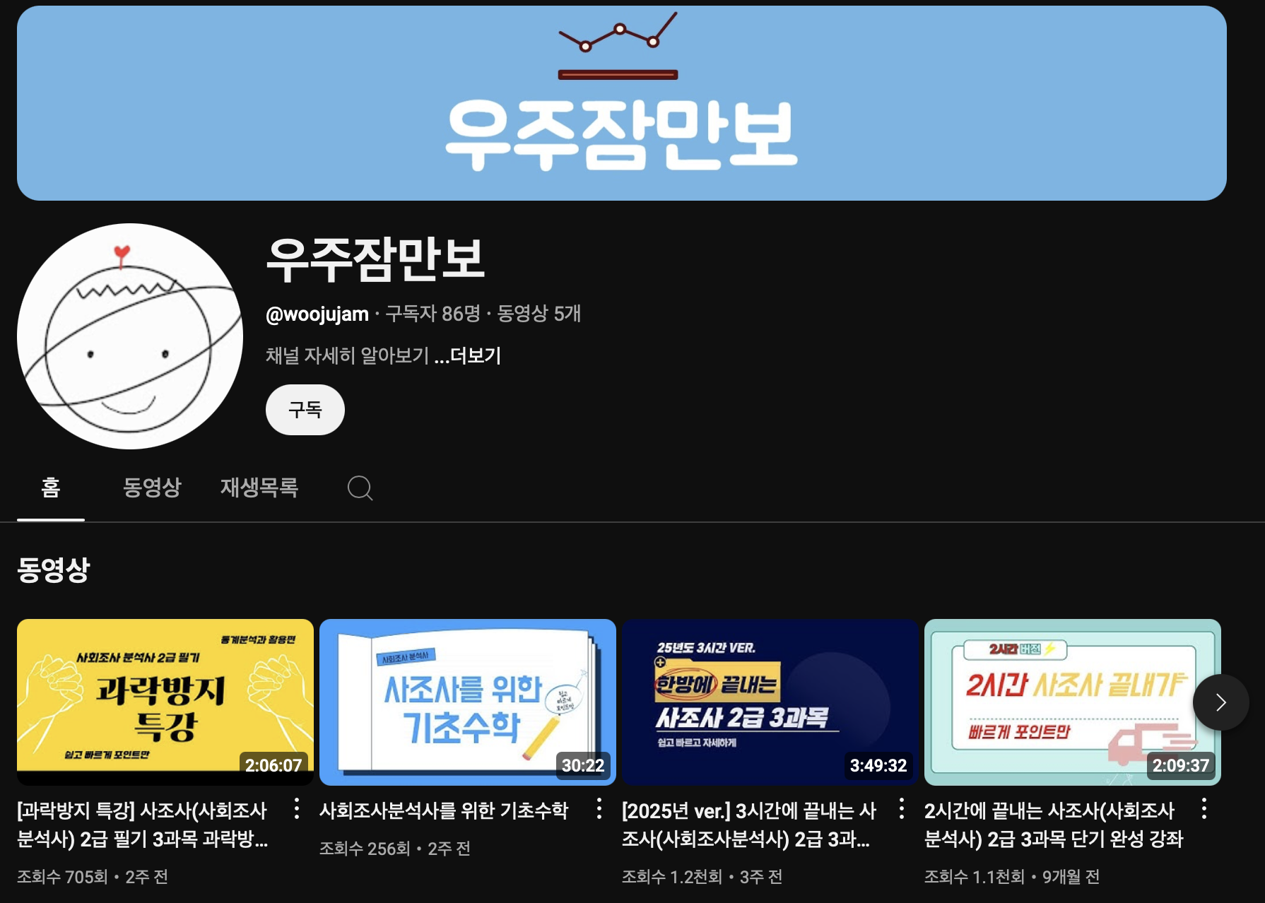 3) 유튜브 채널 우주잠만보