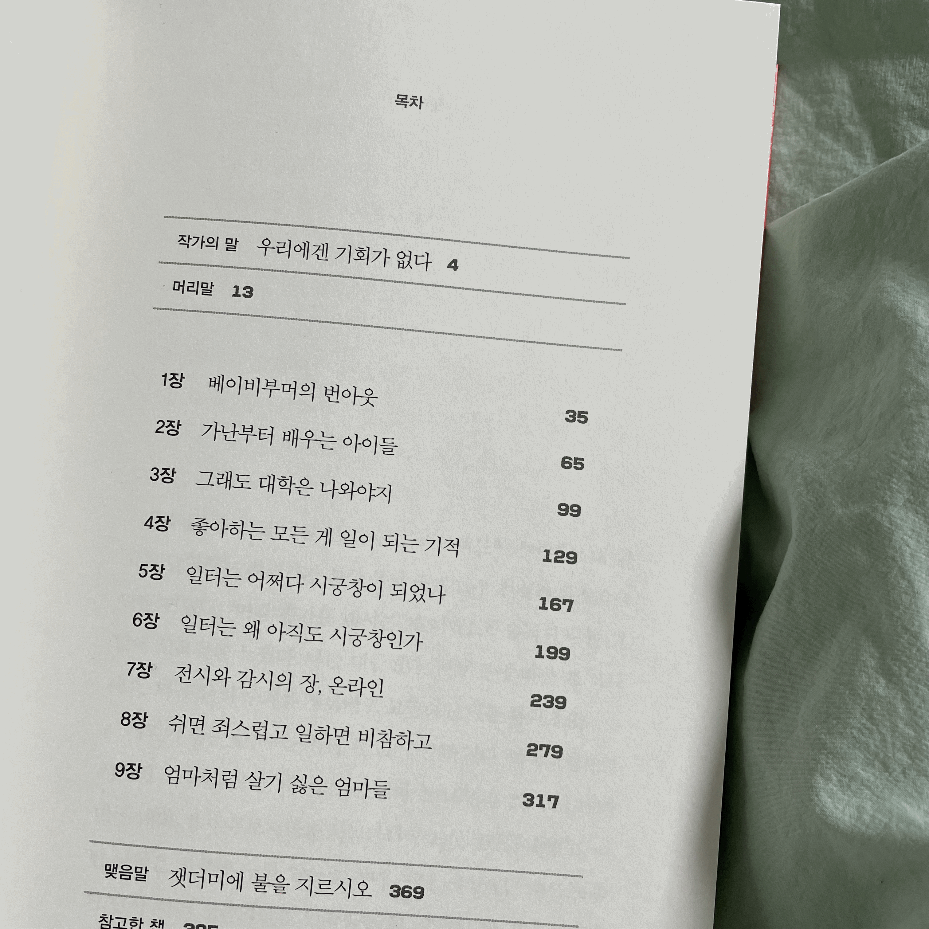아직 사회는 이러한 상황에 맞춰 충분히 변화하지 못했다. 원인은 체제에 있다. 전체를 아우르는 해결책이 필요하다. 지금처럼 개인에게 문제를 찾고 해결하려는 방법으로는 육아 번아웃은 물론 그냥 번아웃도 치료할 수 없다. 밀레니얼들은 애초에 폄하당했고 오해받았으며 애초에 실패하게끔 설계된 상황에서 애를 썼다. 하지만 그럼에도 더 노력하지 않았다고 비난받았다. 우리가 이만큼이나 스스로를 몰아세울 인내심과 적성과 자원이 있다면, 우리 스스로를 위해 싸울 힘도 분명 있을 것이다. 반드시 이렇게 살아야 할 필요는 없다.