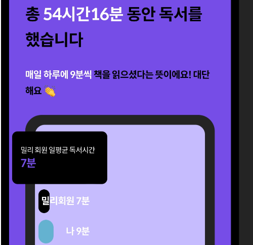 사람이… 1년동안 독서한 시간을 종합해도 3일이 안된다는 사실이 놀랍다. 나 그래도 밀리 회원 평균보다는 쬐끔 더 읽었네