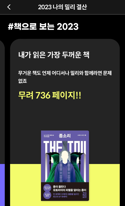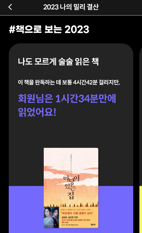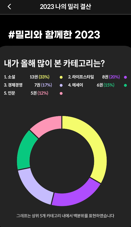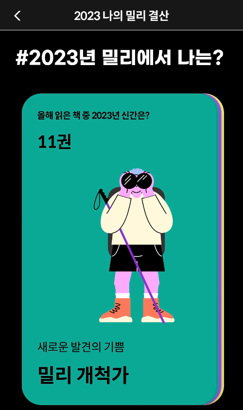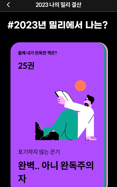 아무튼 각설하고! 23년도 밀리의 서재는 사실 남돈내읽이었다. 회사에서 교육 차원에서 제공해 준 기업회원 계정이었기 때문 (올해는 내돈내산 구독 중... 눈물)