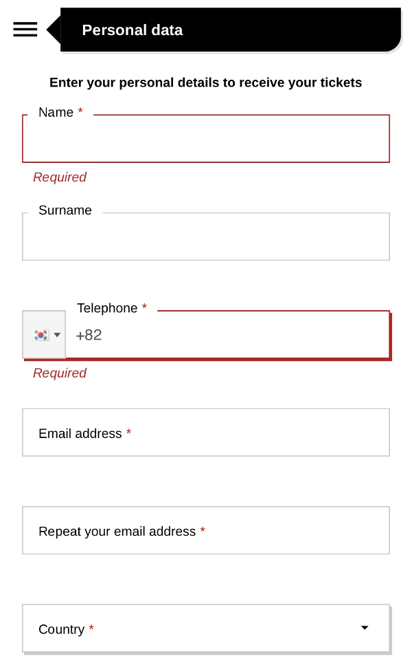 이름 - 성 - 전화번호 - 이메일 주소 - 나라 순으로 잘 적어주세요.