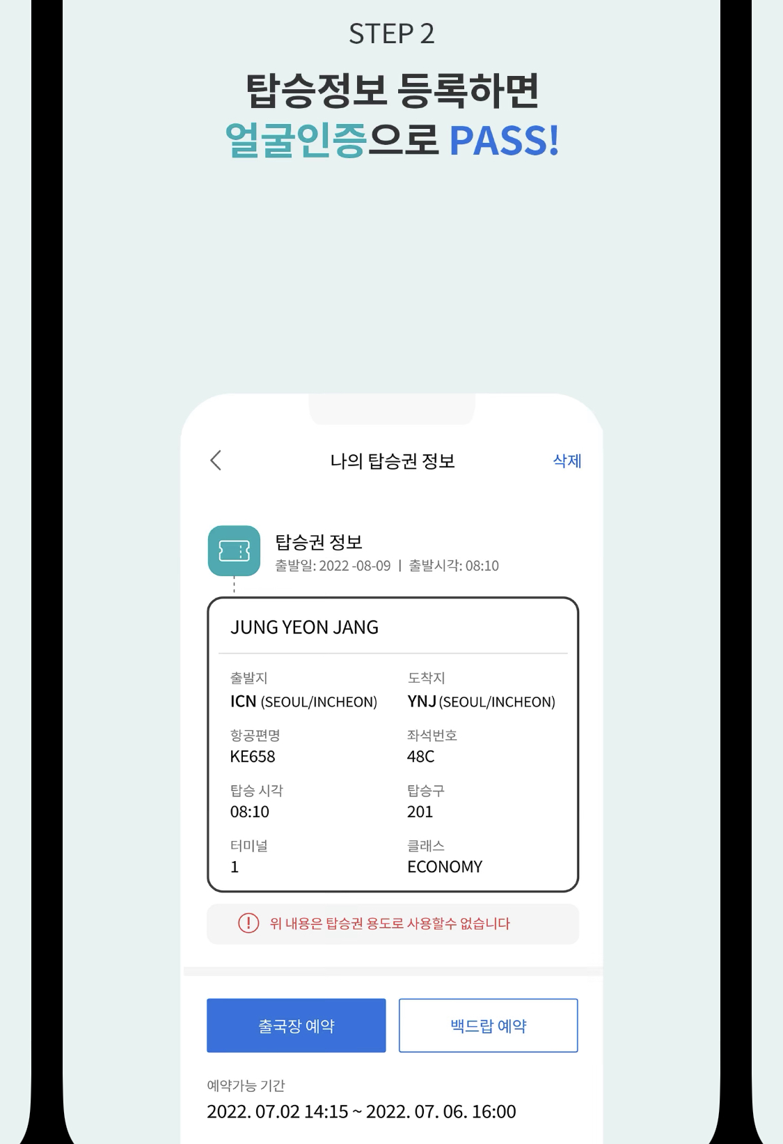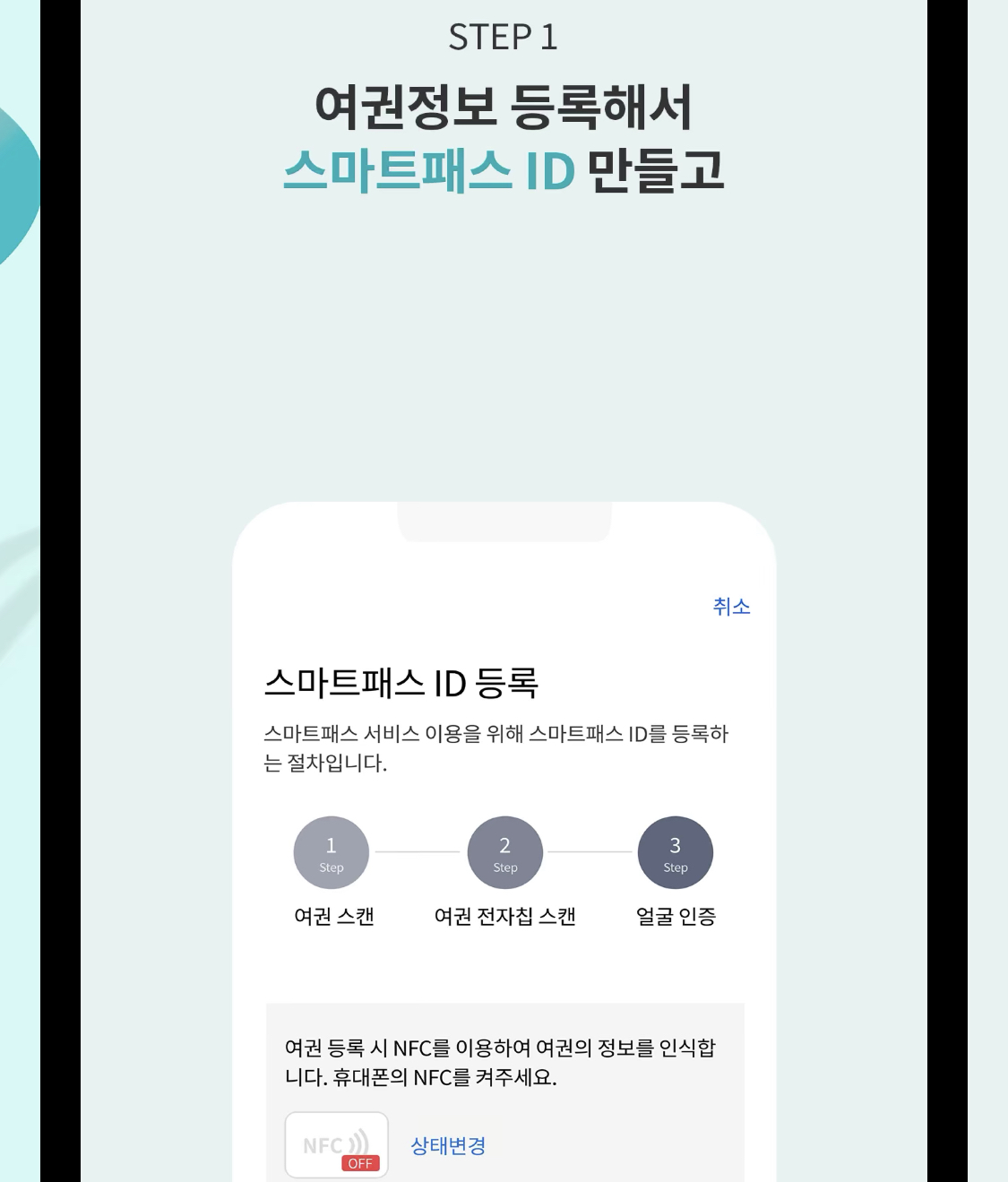 이렇게 어플에 여권정보를 등록해서 스마트패스 ID를 만들어두고,