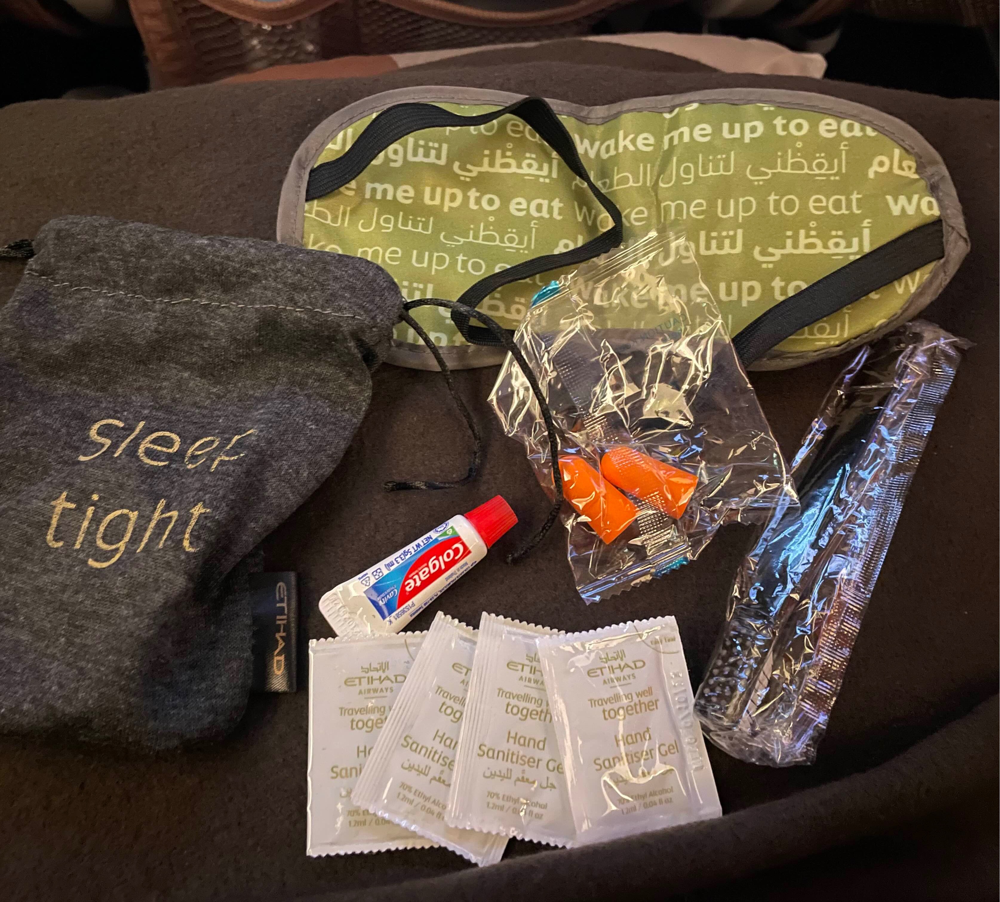 에코백 안에는 담요 안대 귀마개 핸드크림 손소독제가 있었다. 왜 치약칫솔 안 줘…? 10시간을 타는데…