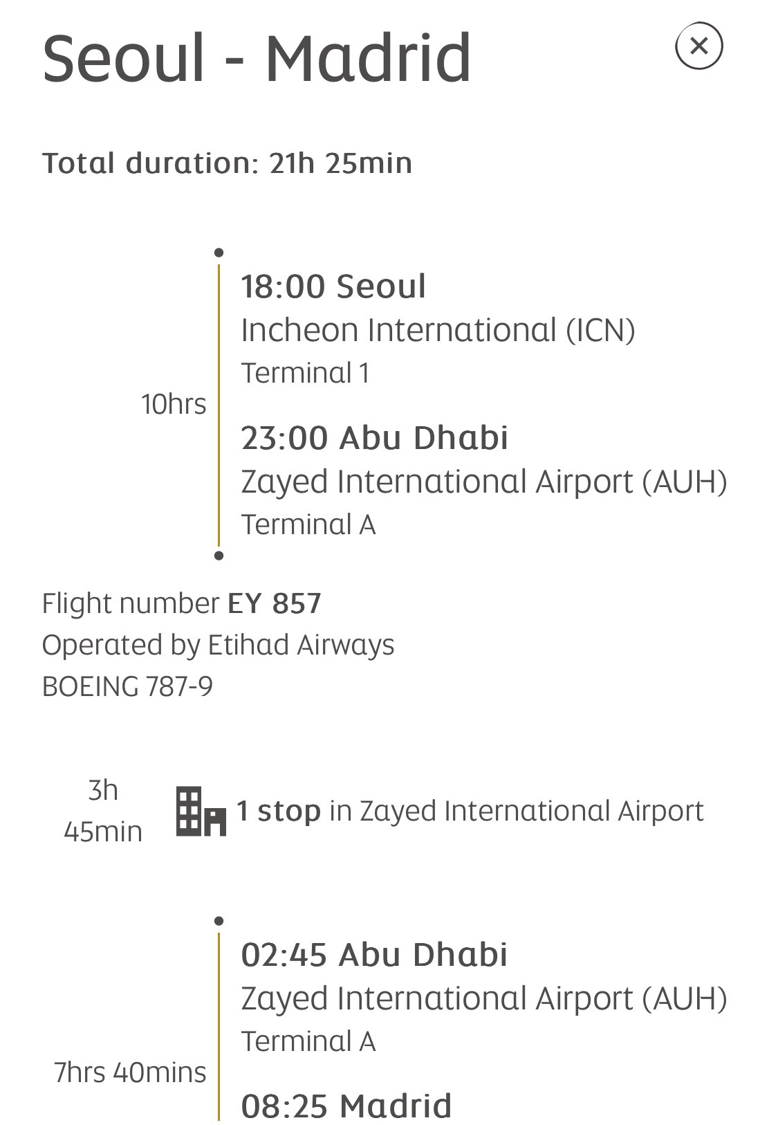 나는 에티하드 항공에서 아부다비를 경유해 마드리드로 가는 비행 편을 샀다. 계획적으로 사는 인간은 아니라 표값이 그리 싸지는 않았다. 마드리드 IN 바르셀로나 OUT으로 해서 135 정도 나왔습니다. (돈 없는데 🥺유로도 미쳤고🥹물가도 미쳤어😭)