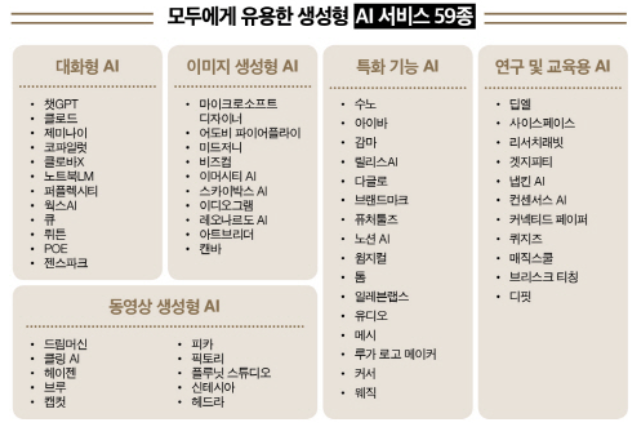 [대화형, 이미지 생성형, 동영상 생성형, 특화 기능 생성형, 연구 및 교육용]
