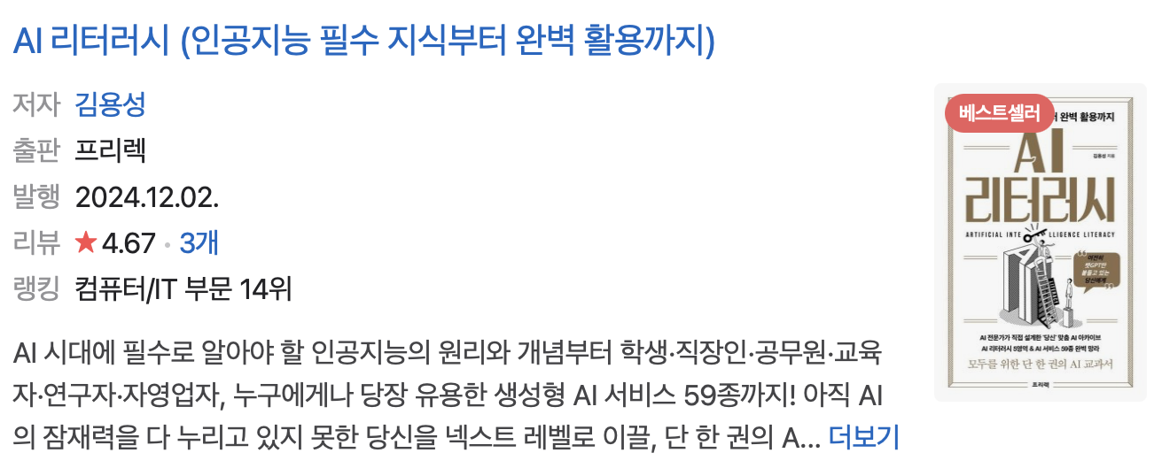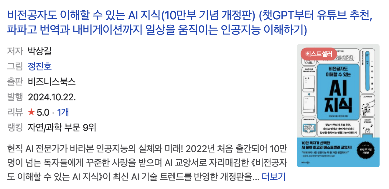2024.12.27 - [공부/IT] - [책 리뷰] 비전공자도 이해할 수 있는 AI 지식