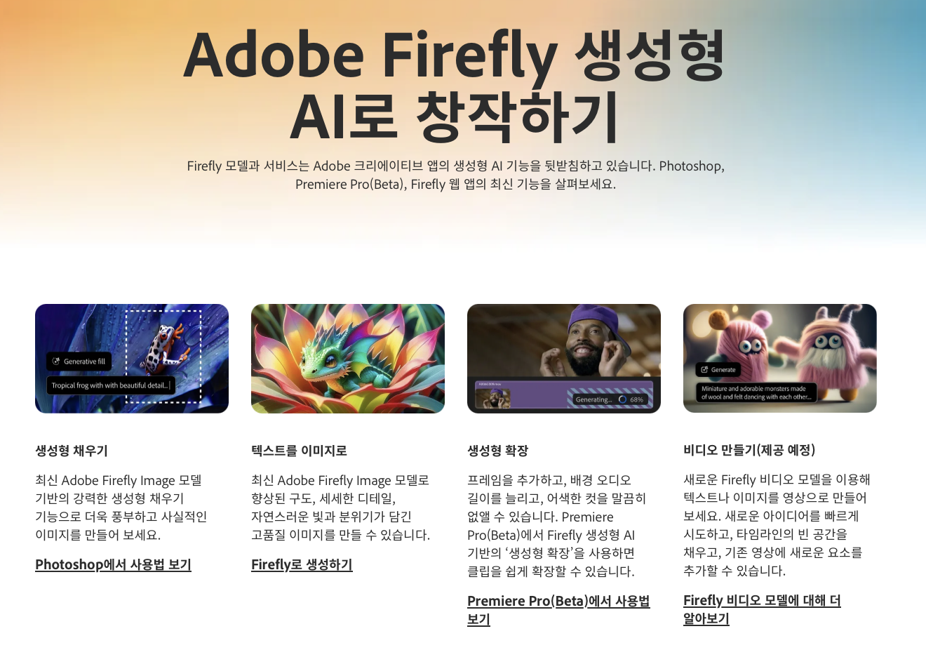 (2) 파이어플라이, Firefly, https://www.adobe.com/kr/products/firefly.html