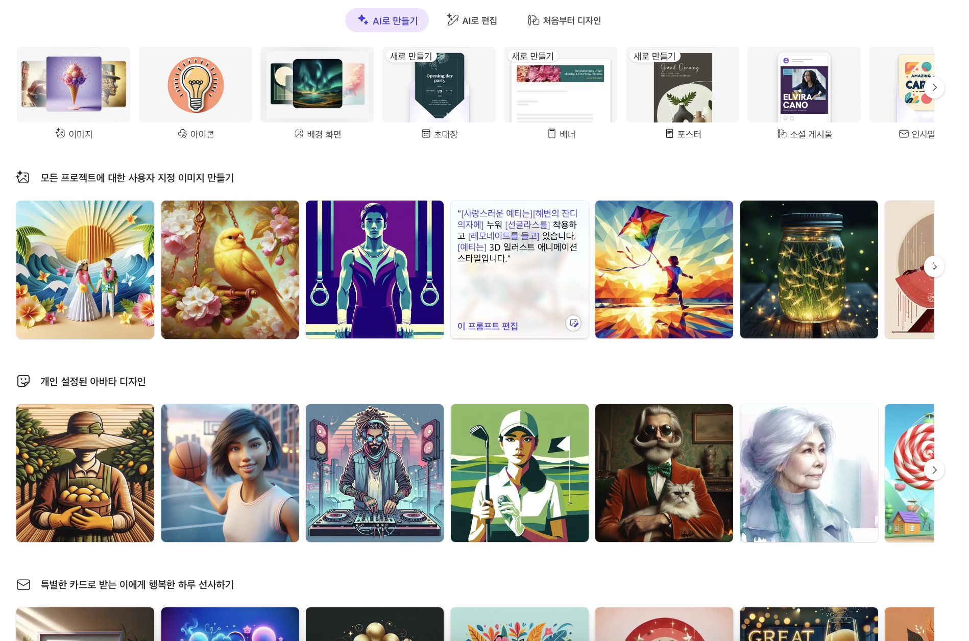 - 배경화면, 스티커 등 다양한 이미지 무료 제작 가능