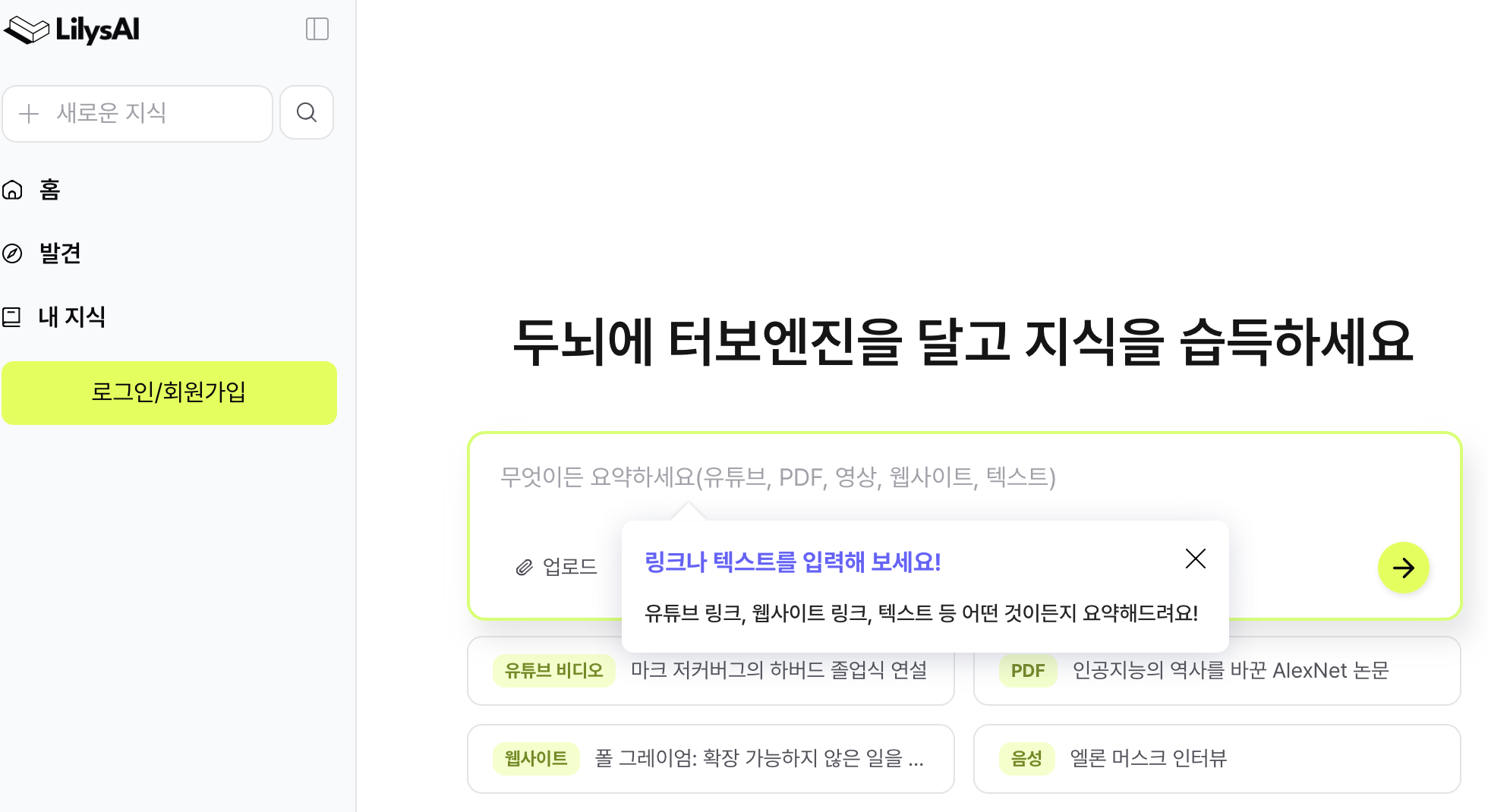 - 유튜브 등 영상/웹사이트/PDF/녹음 요약 기능 제공
