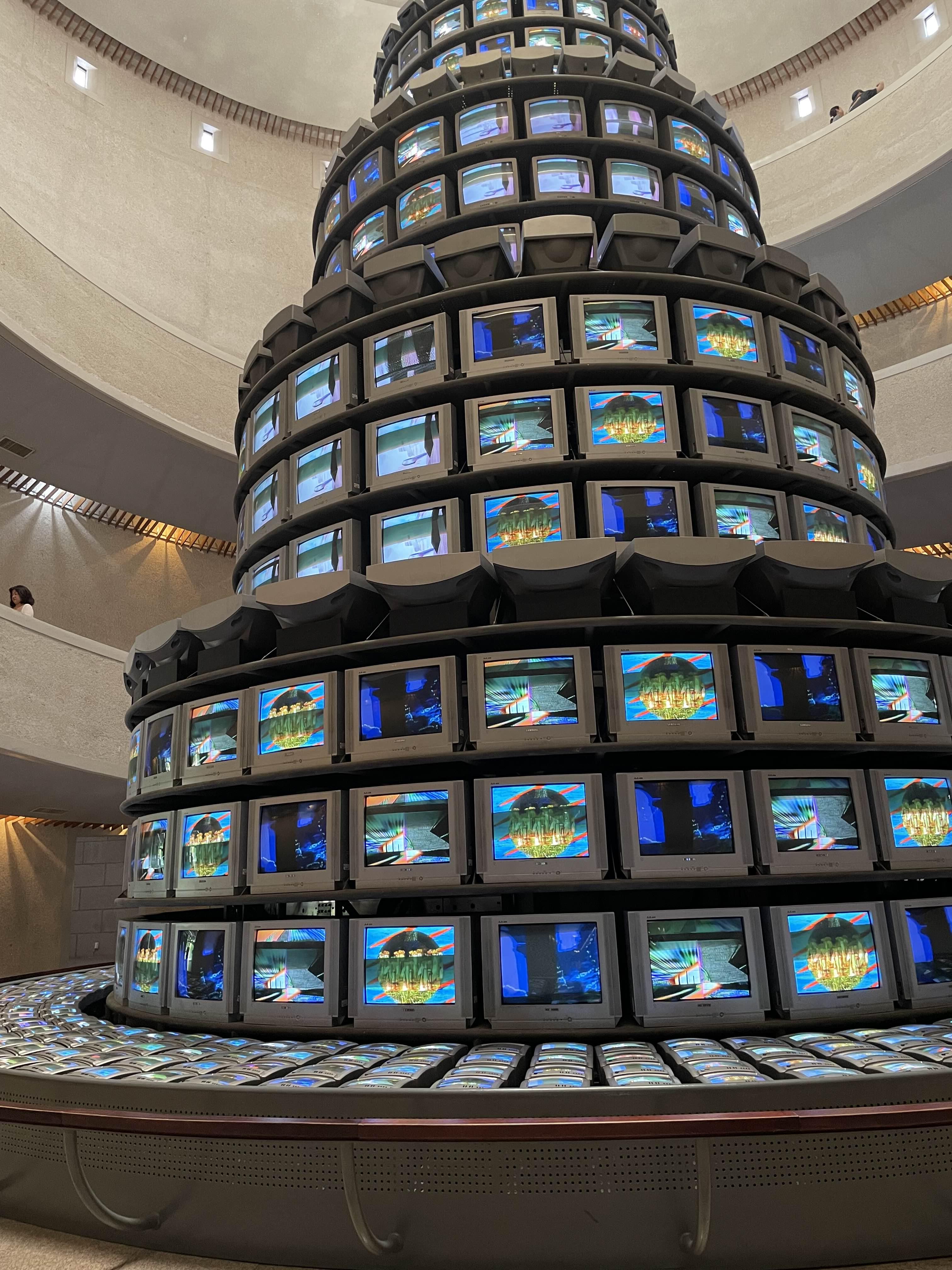 <다다익선>은 목금토일 오후 2시부터 4시까지만 켜지는 작품이다. 시간이 맞는다면 구경하세요.