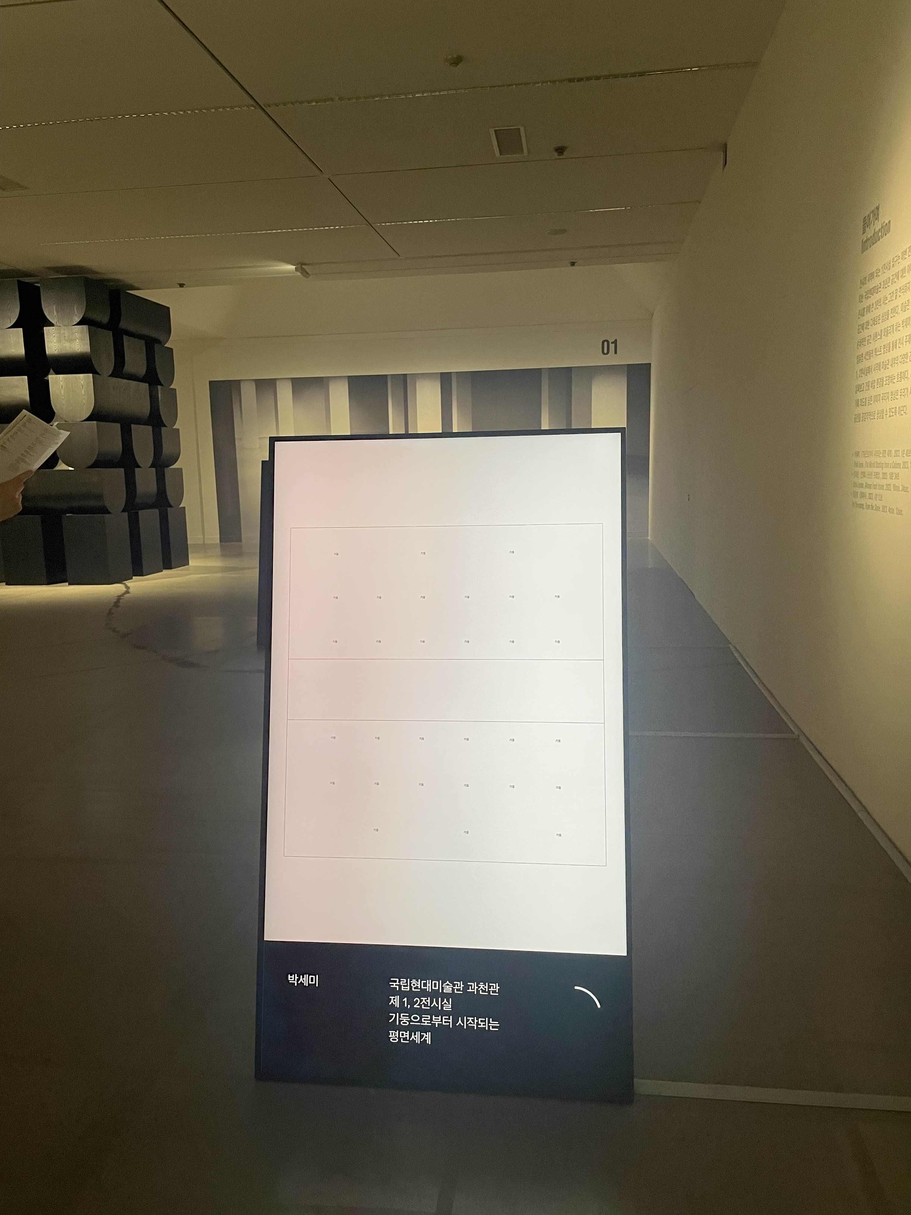 <젊은 모색 2023>은 관람료가 있는 전시입니다. 관람료는 2천원! 그리고 이번 전시는 1층에서 진행 중입니다. 백남준의 작품을 지나 오른쪽으로 가주세요.