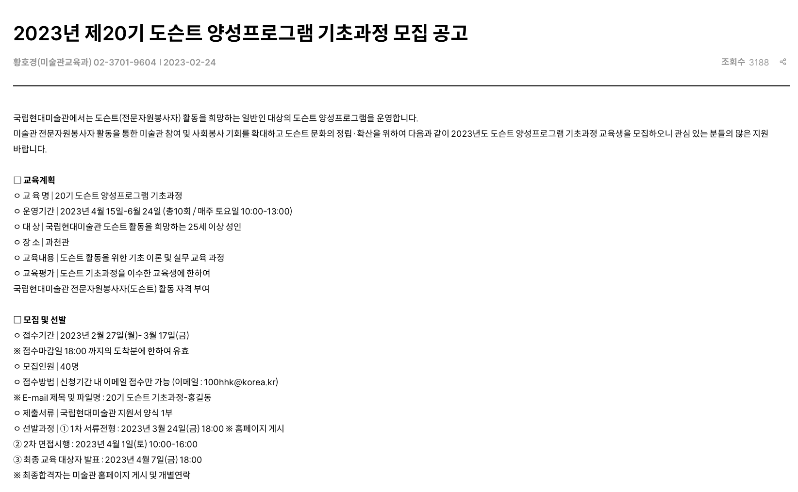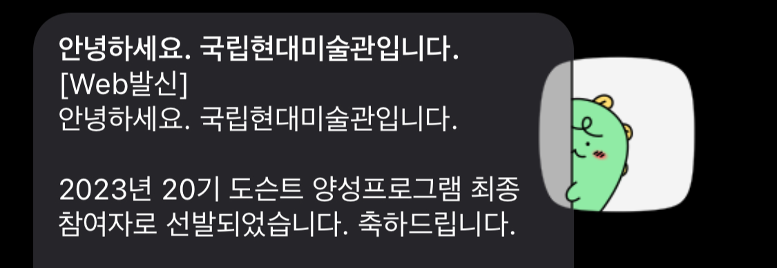 | 국립현대미술관 제20기 도슨트 양성프로그램 기초과정 지원후기(서류부터 면접까지) (3) | 2023.07.17 |