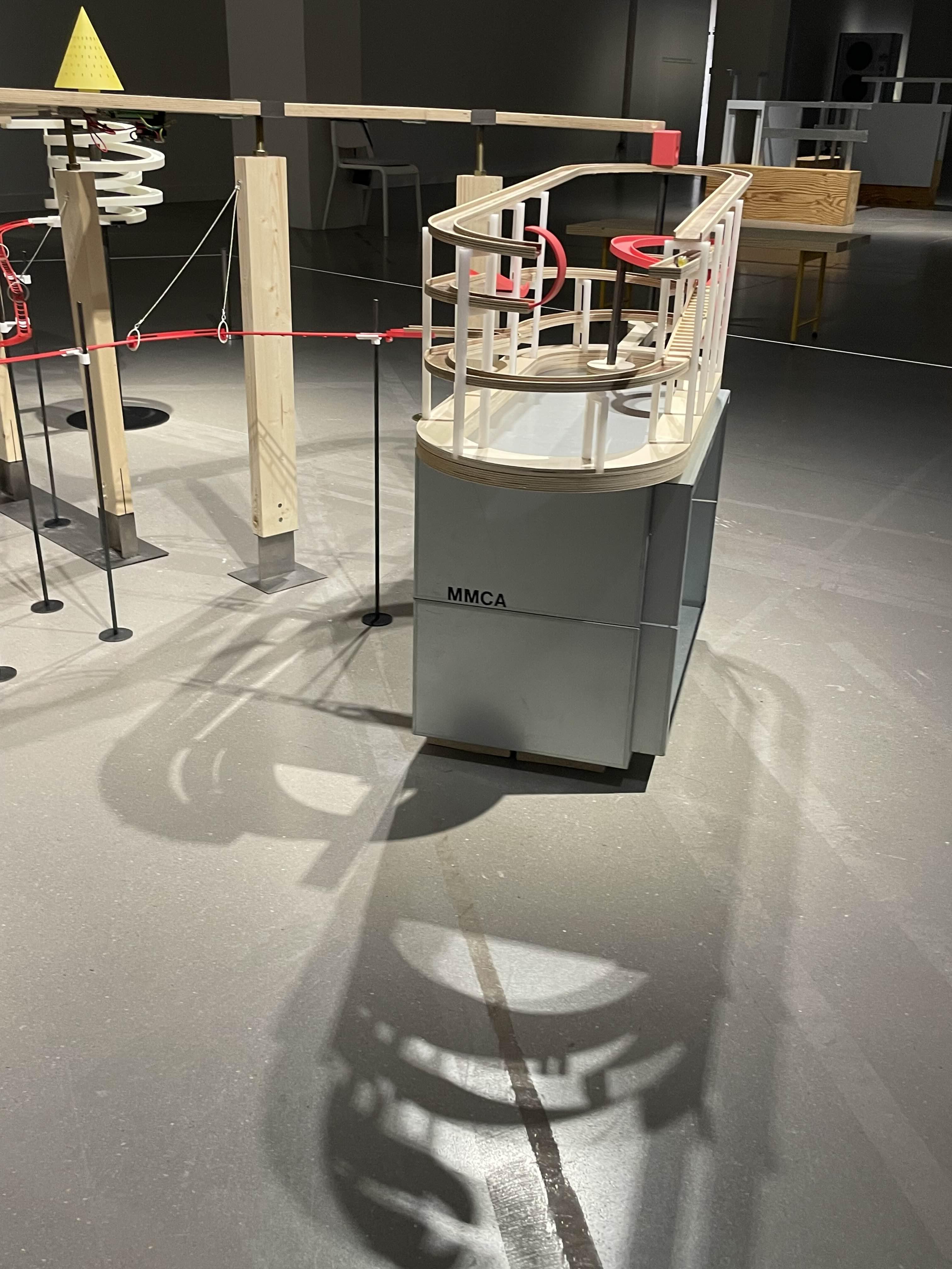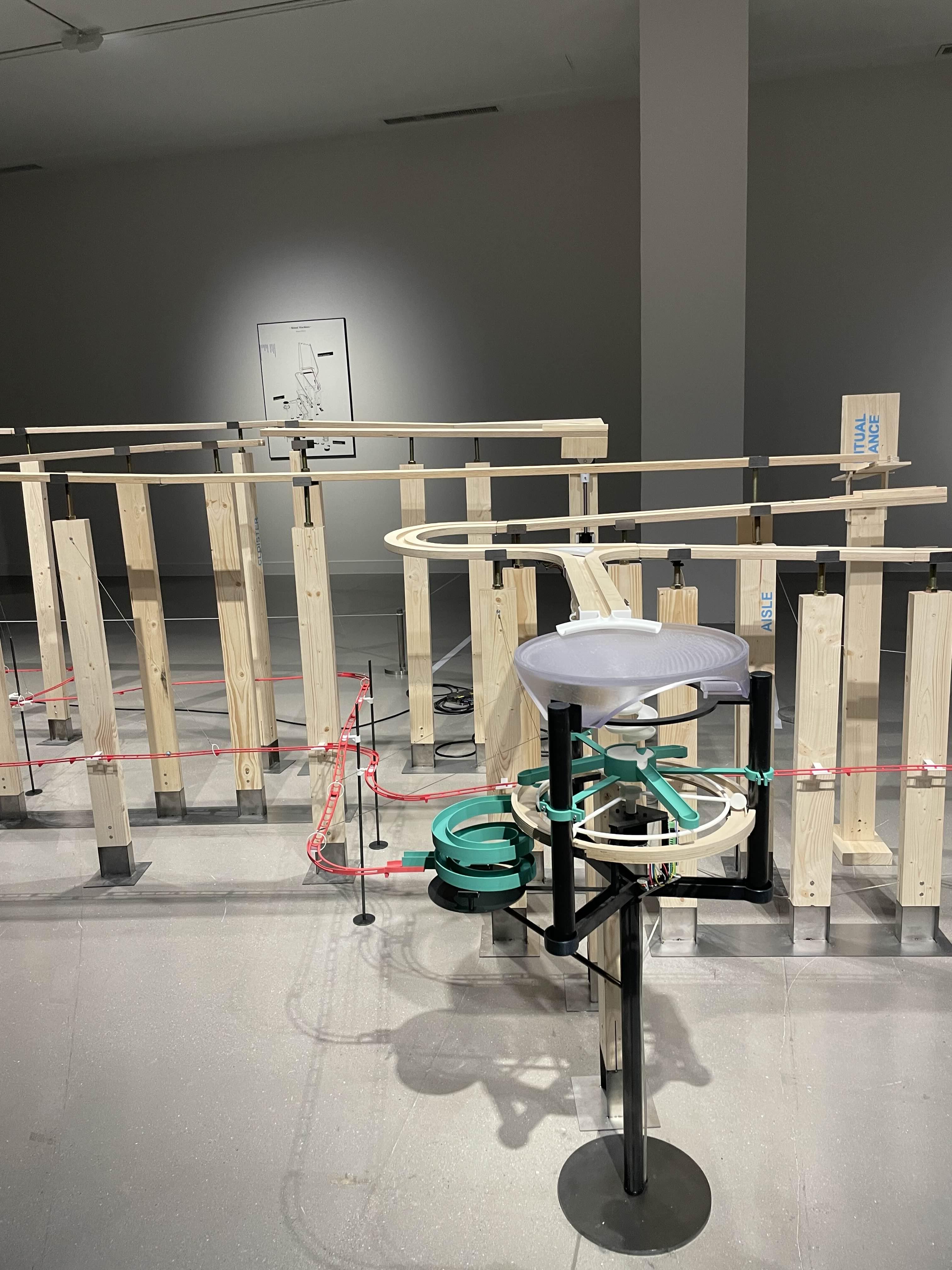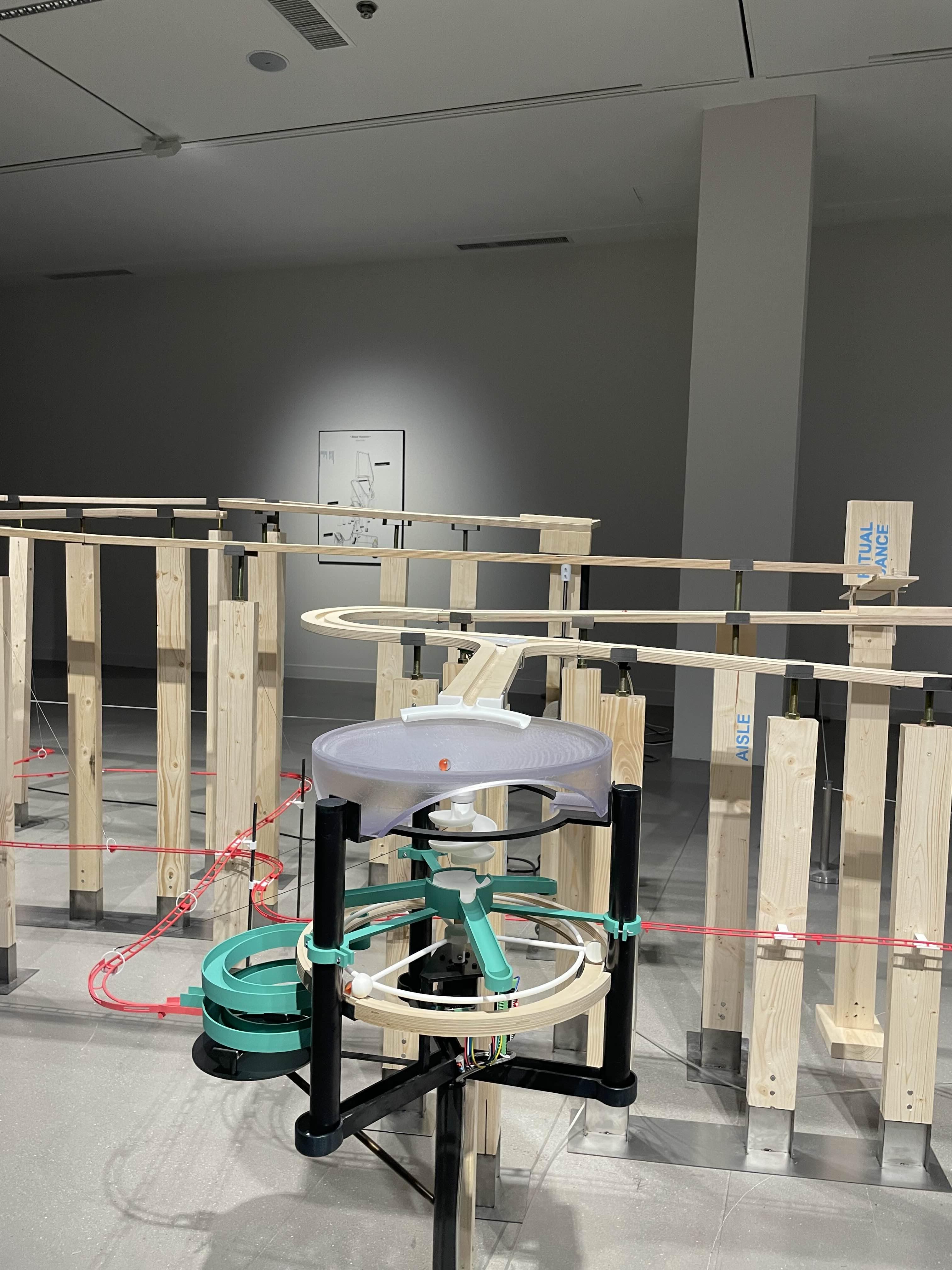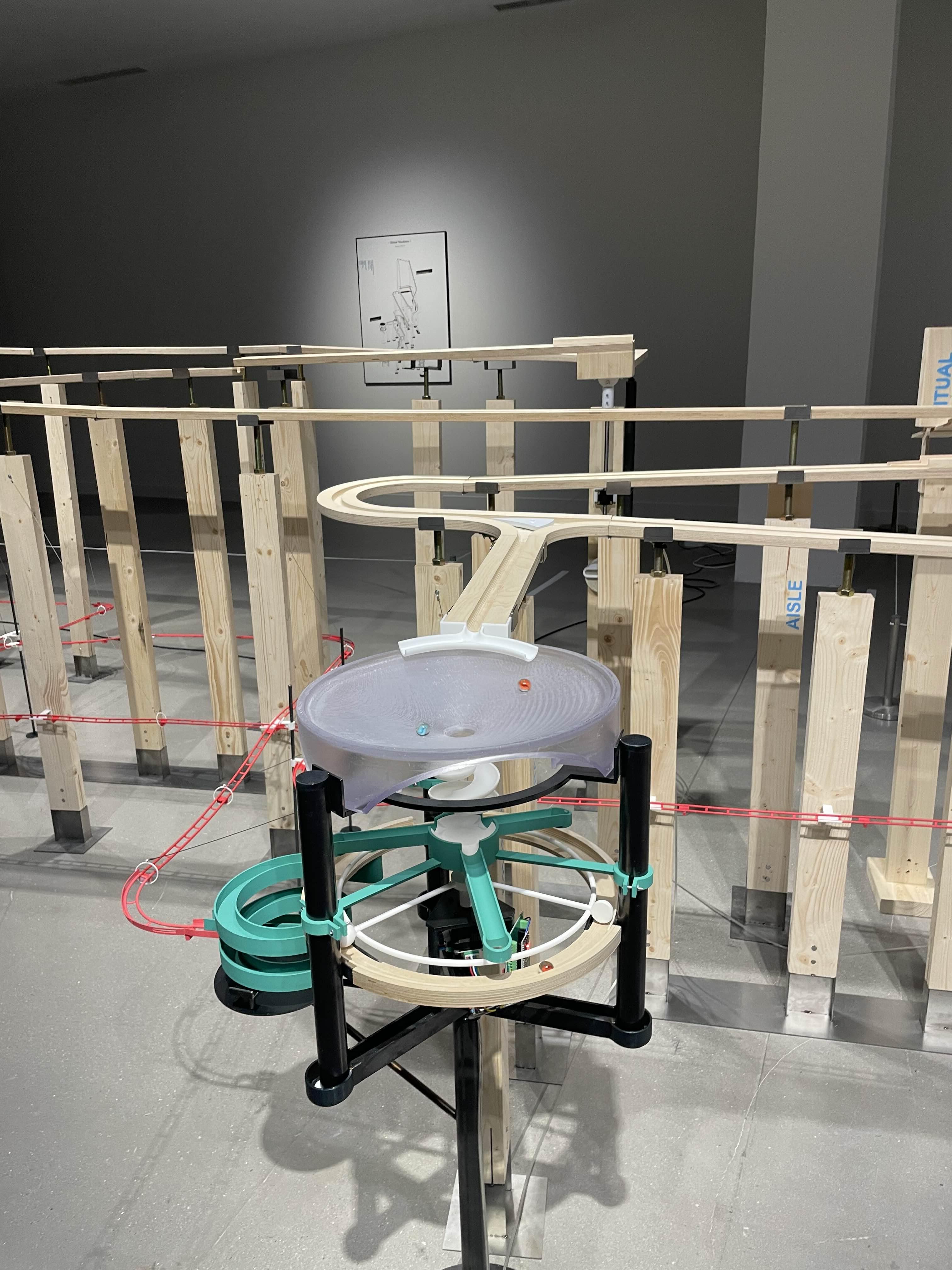 나선 램프, 원형 정원 등 국현미 과천관의 주요 건축 요소들을 표현해 낸 머신 위를 색색의 구슬들이 돌아다닌다. 구슬들은 종종 분기점에서 서로 다른 길로 가게 되는데, 미술관 곳곳을 돌아다니며 작품을 감상하는 관람객들을 표현해낸 것이라고 한다.
