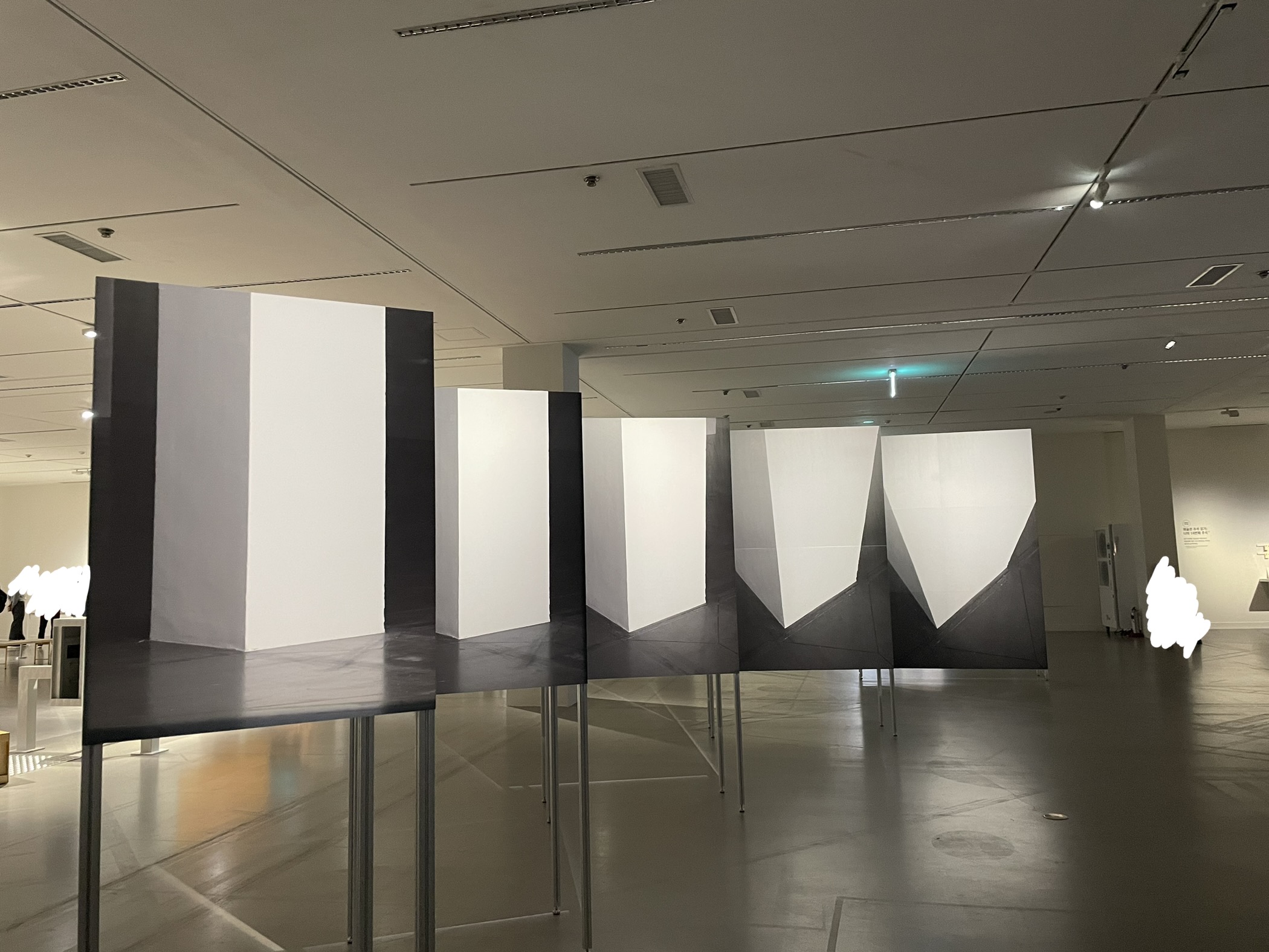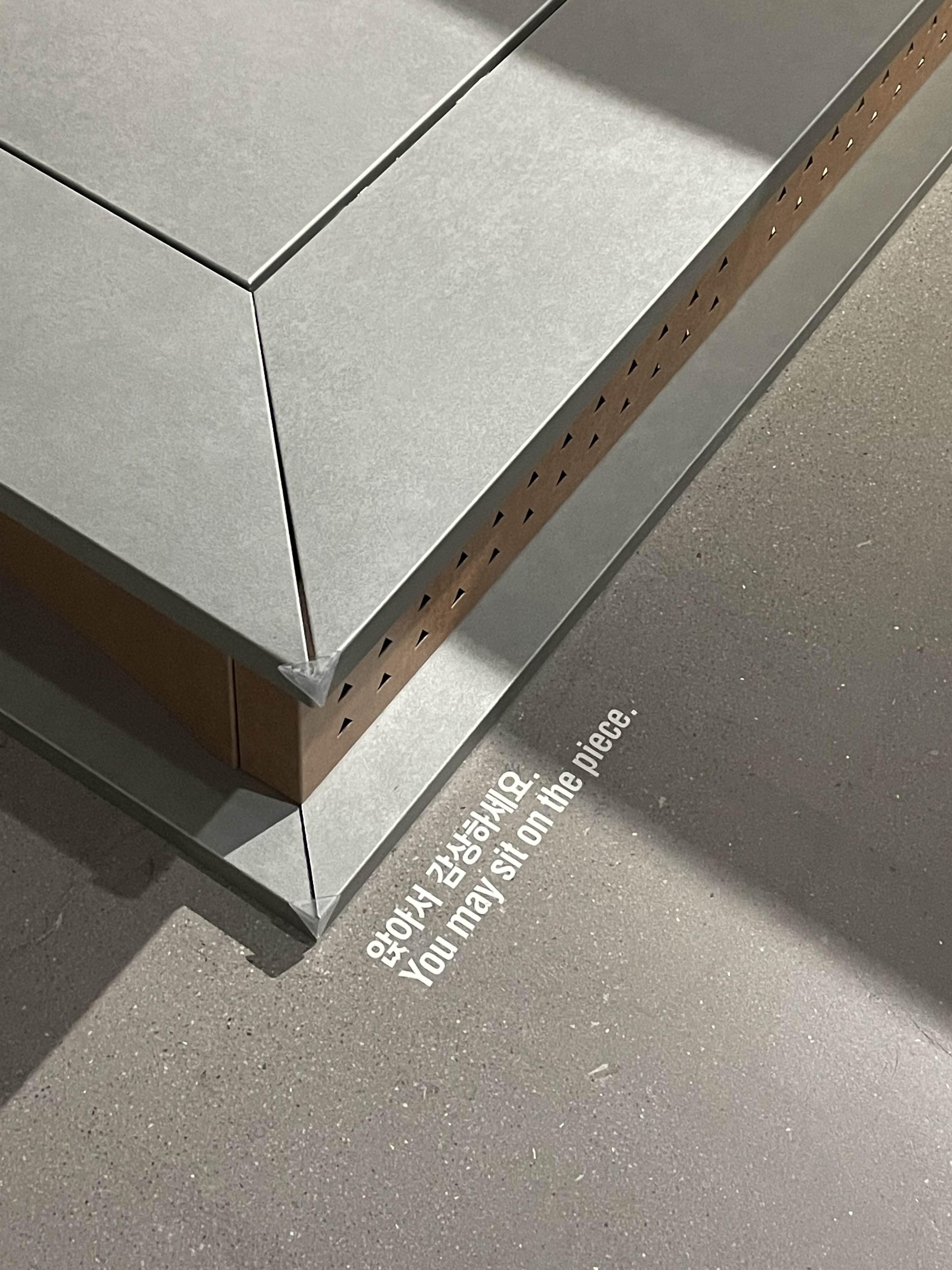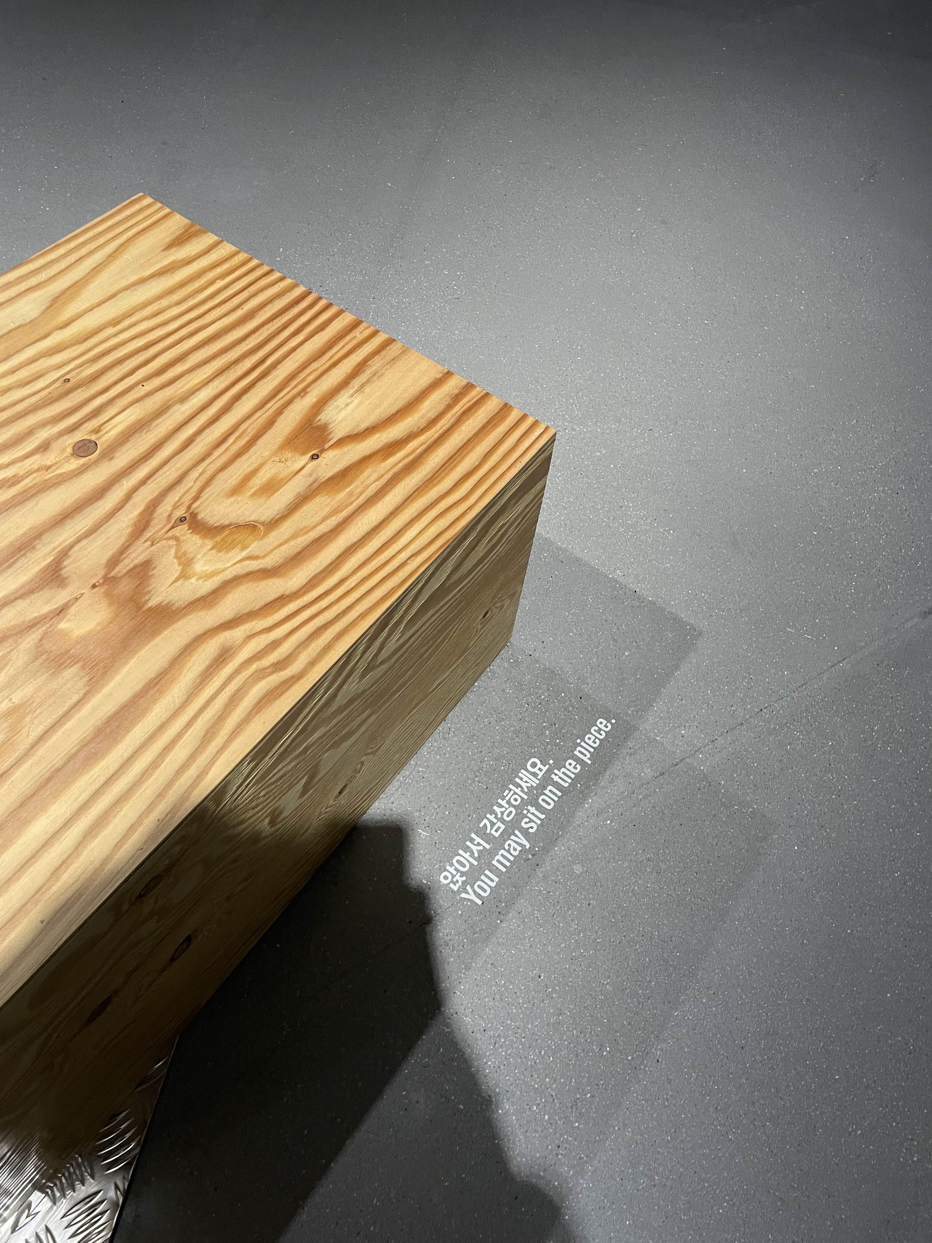 여기부턴 사람들이 꽤 나오네... 다음은 조규엽 작가의 <바닥 부품>. 미술관에서 사람들의 행동을 상상해 보고 그에 필요한 치수를 사물화 한 결과물이라고 한다. 일상에서 쉽게 볼 수 있는 소재들을 다르게 디자인해 냈다. 명확한 목적을 가지지는 않았지만, 관람객들은 <바닥 부품>에 잠시 걸터앉아 쉬어가거나, <바닥 부품>을 지나쳐 다른 작품으로 이동하면서 자연스럽게 공간과 관계를 맺게 된다고 한다.
