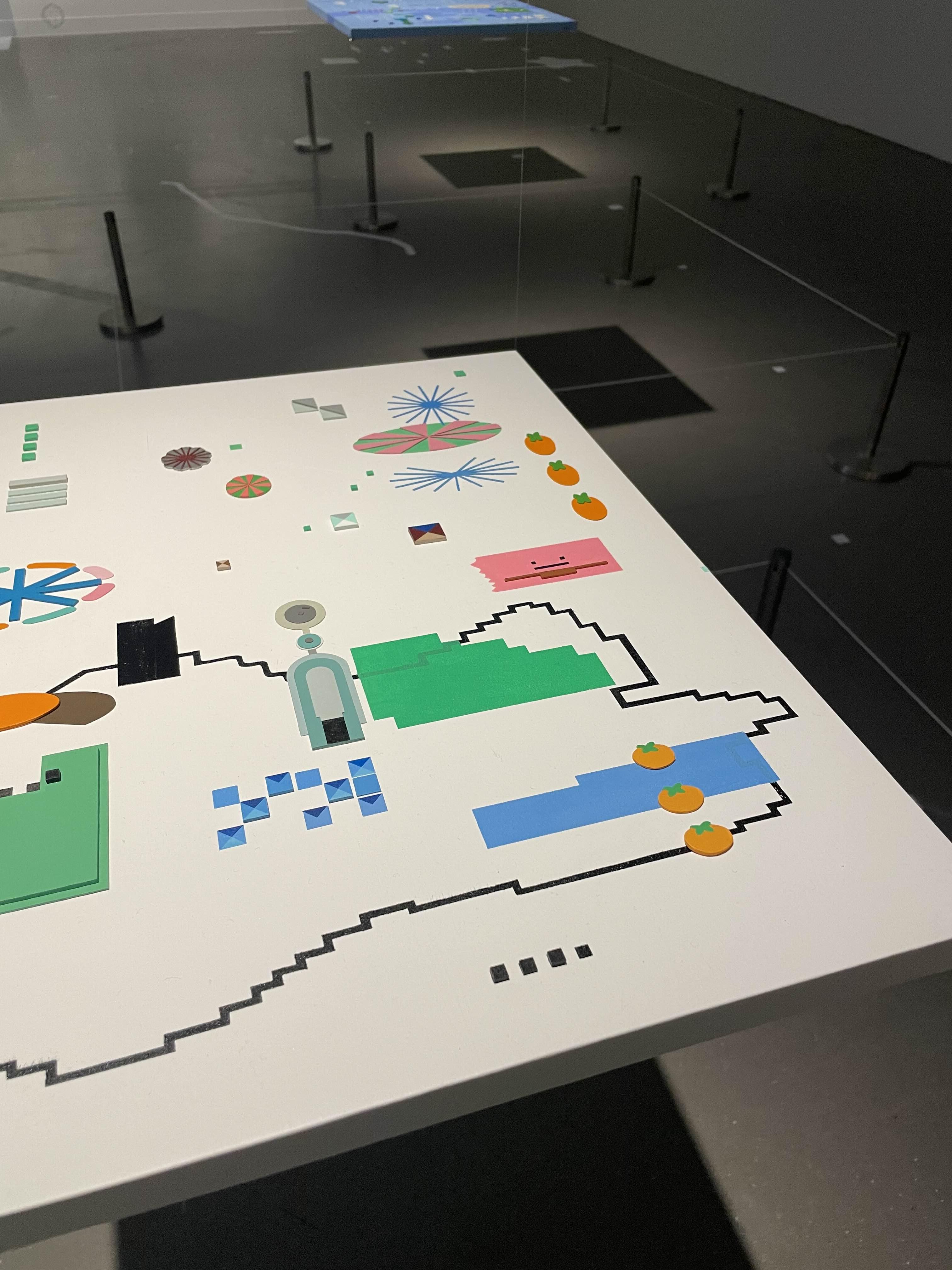 첫 시작은 <횃불과 경사로>. 위성으로 내려다본 과천의 모습을 평면에 귀엽게 표현해 낸 작품이다. 마치 게임을 하는듯한 기분을 선사해 준다.
