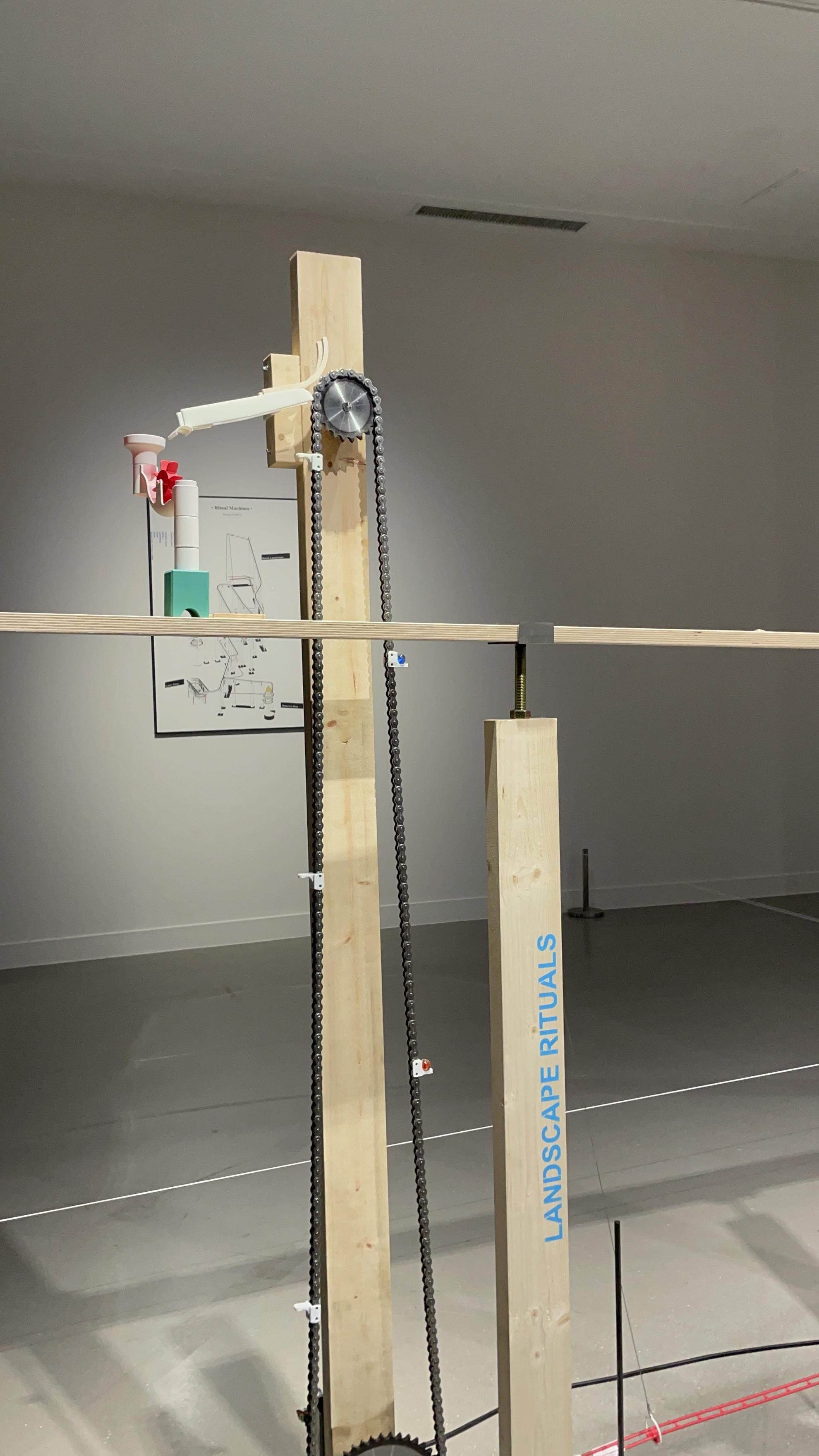 박희찬 작가의 <리추얼 머신>. 쇠구슬을 정해진 경로에 따라 흘려보내고, 다시 끌어올려 계속 순환하게 만든 장치인 마블 머신을 활용한 작품이다.