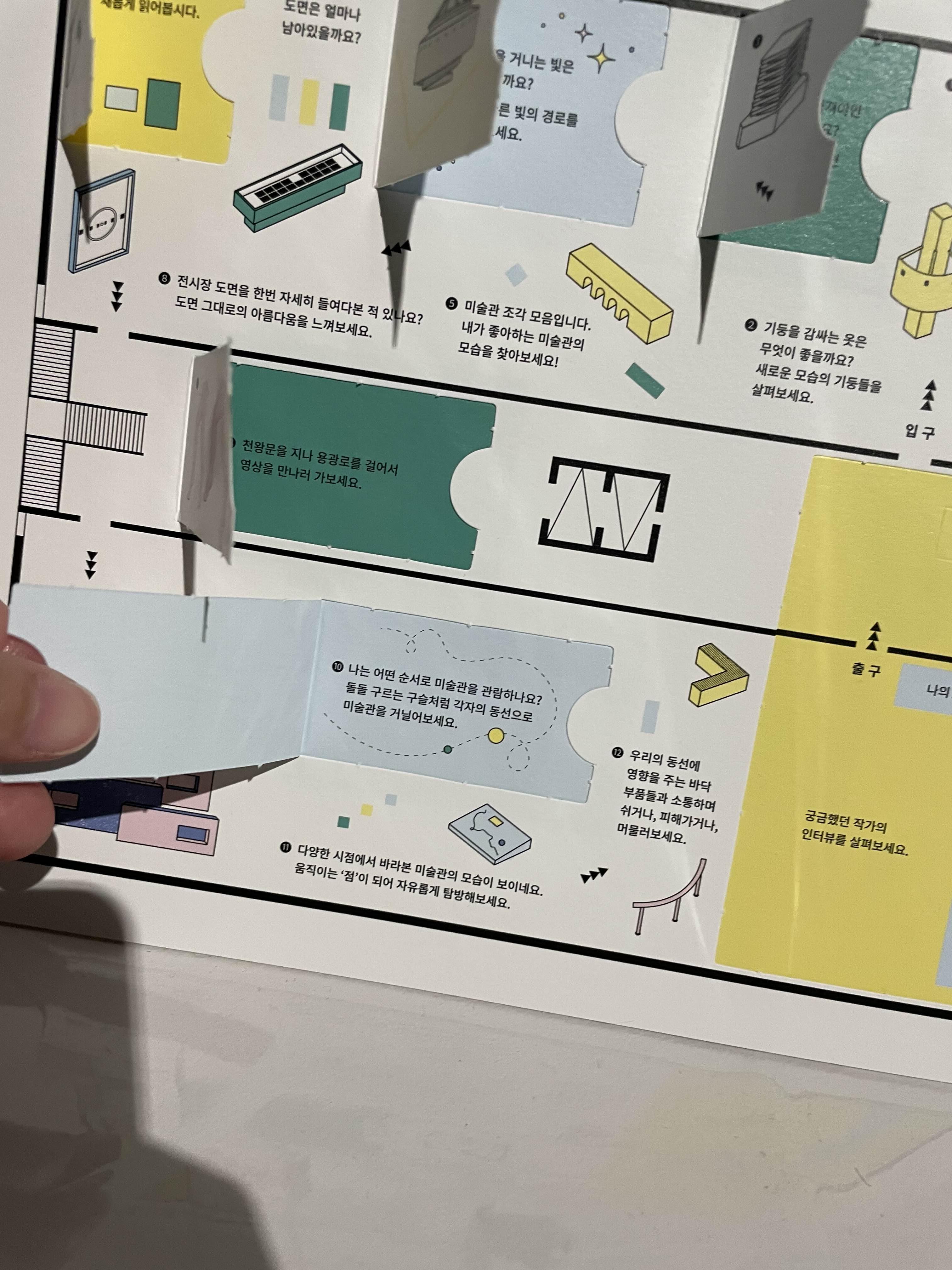 이건 참여형 전시를 위해 놓여 있던 미니 카드. 작가들이 전시장을 해석해 달아 놓은 주석을 볼 수 있다. 아가들과 함께 들고 다니면서 해석하면 좋을 것 같았다. 전시장 마지막이 아니라 초입에 두어도 좋을 듯?