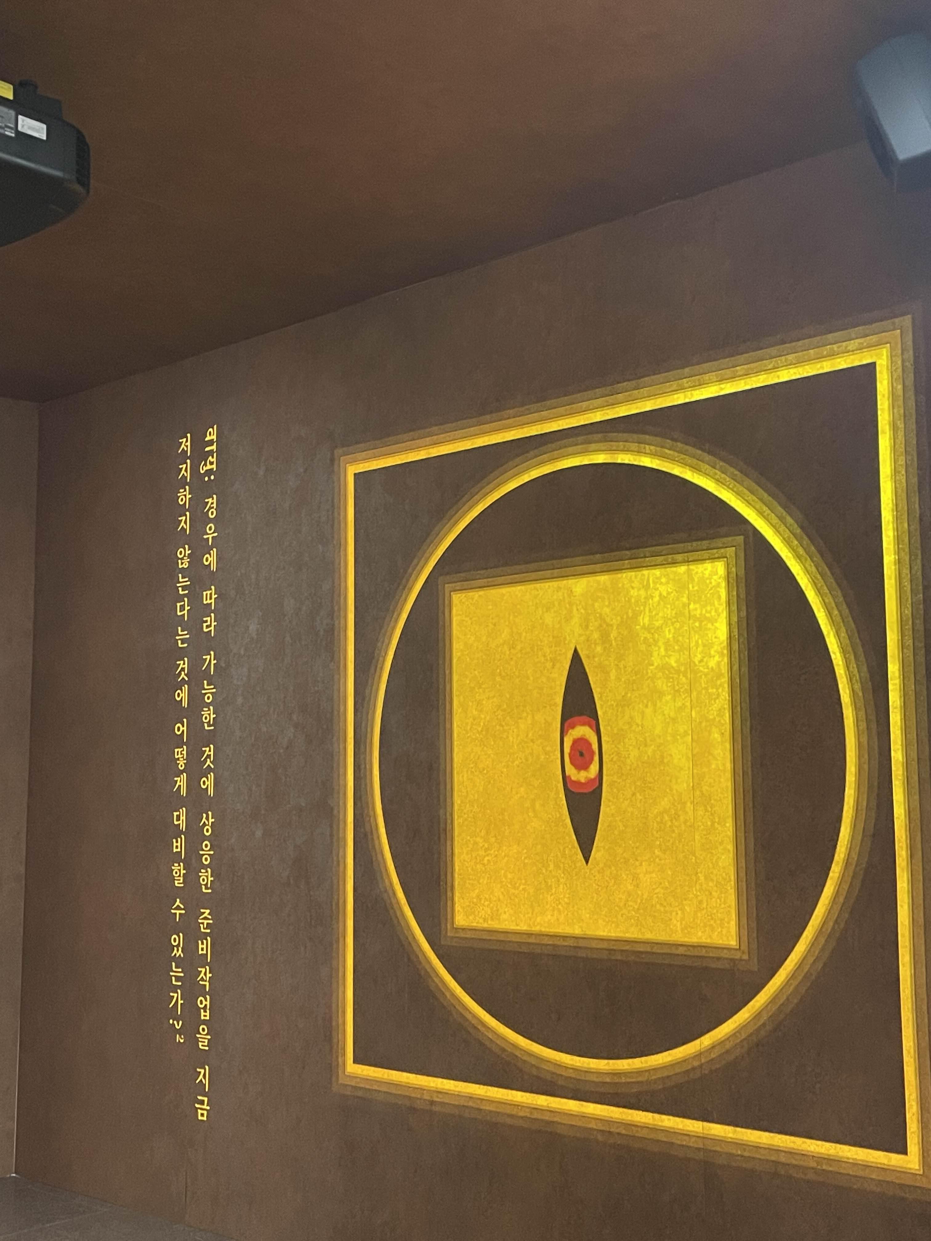 아래는 육면체 구조물과 영상으로 이루어진 <천왕문>이다. 상당히 심오한 질문들과 그에 대한 답을 마주 보고 있는 영상으로 계속해서 보여준다.