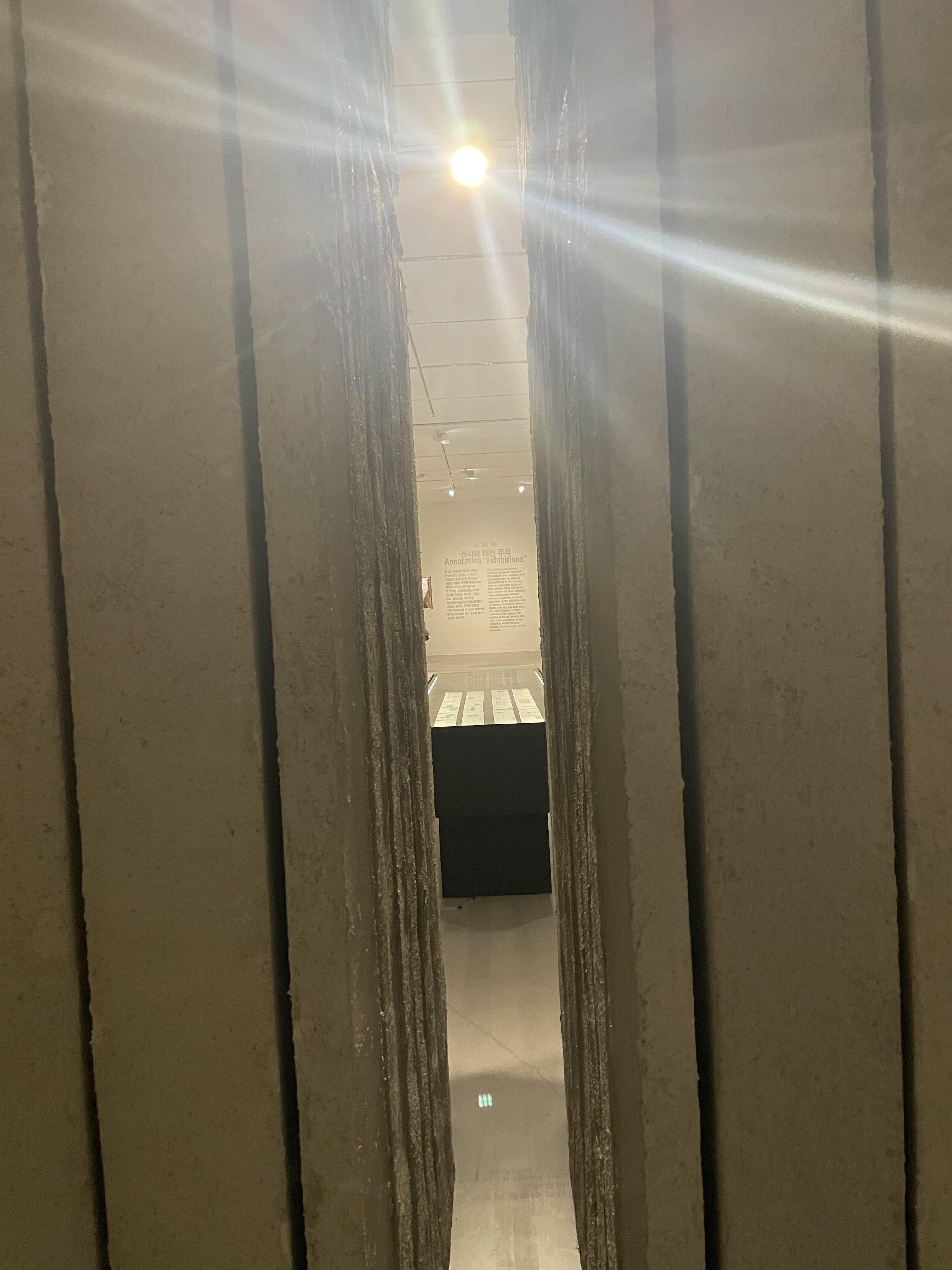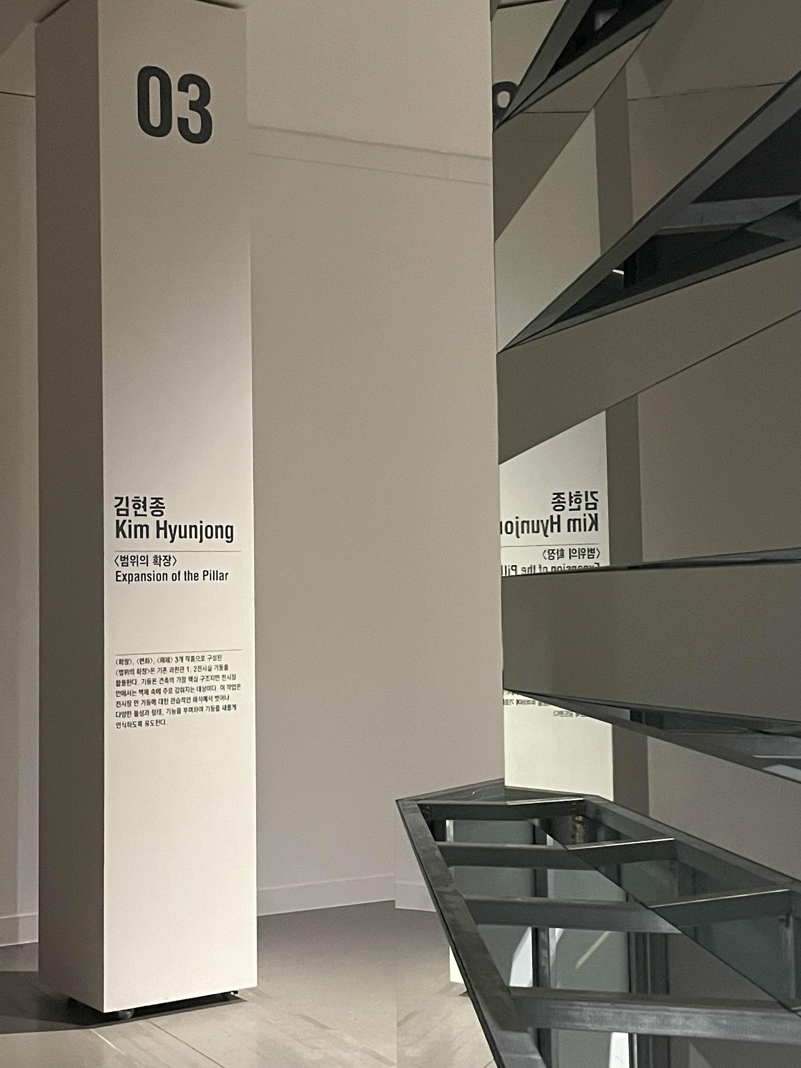 뭐랄까 갑자기 전시장의 안과 밖을 나누는 구조물이 눈앞에 나타난 것 같달까. 기대서 전시장을 바라보는 건 색다른 경험이긴 했다.